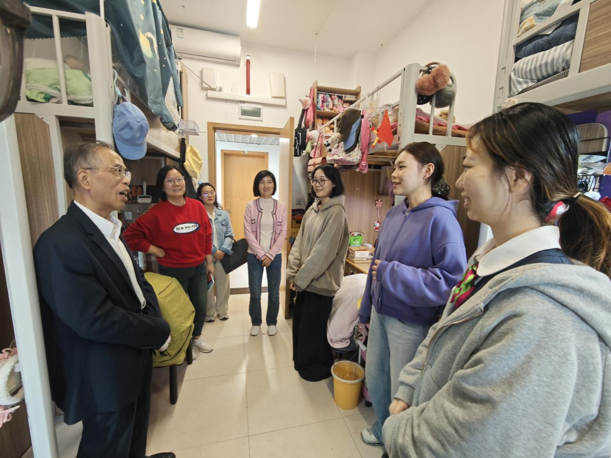 走访研究生寝室期间,钱书记与同学们亲切交流,鼓励大家以更饱满的精神和心态迎接学习和生活,对同学们提出的问题进行耐心解答。钱书记勉励同学们珍惜光阴、发挥自身的学科专业优势,立足当下,强化使命感与责任感,同时注意身心健康,积极参加各种有益活动与保持运动锻炼,丰富校园生活。在走访本科生寝室的时候,钱书记对学生的寝室卫生和整洁度给予了高度评价,并鼓励学生们继续保持这种良好的生活习惯。他强调,寝室不仅是学生休息的场所,更是学习和成长的“第二课堂”,良好的寝室环境对于提升学生的综合素质具有重要意义。