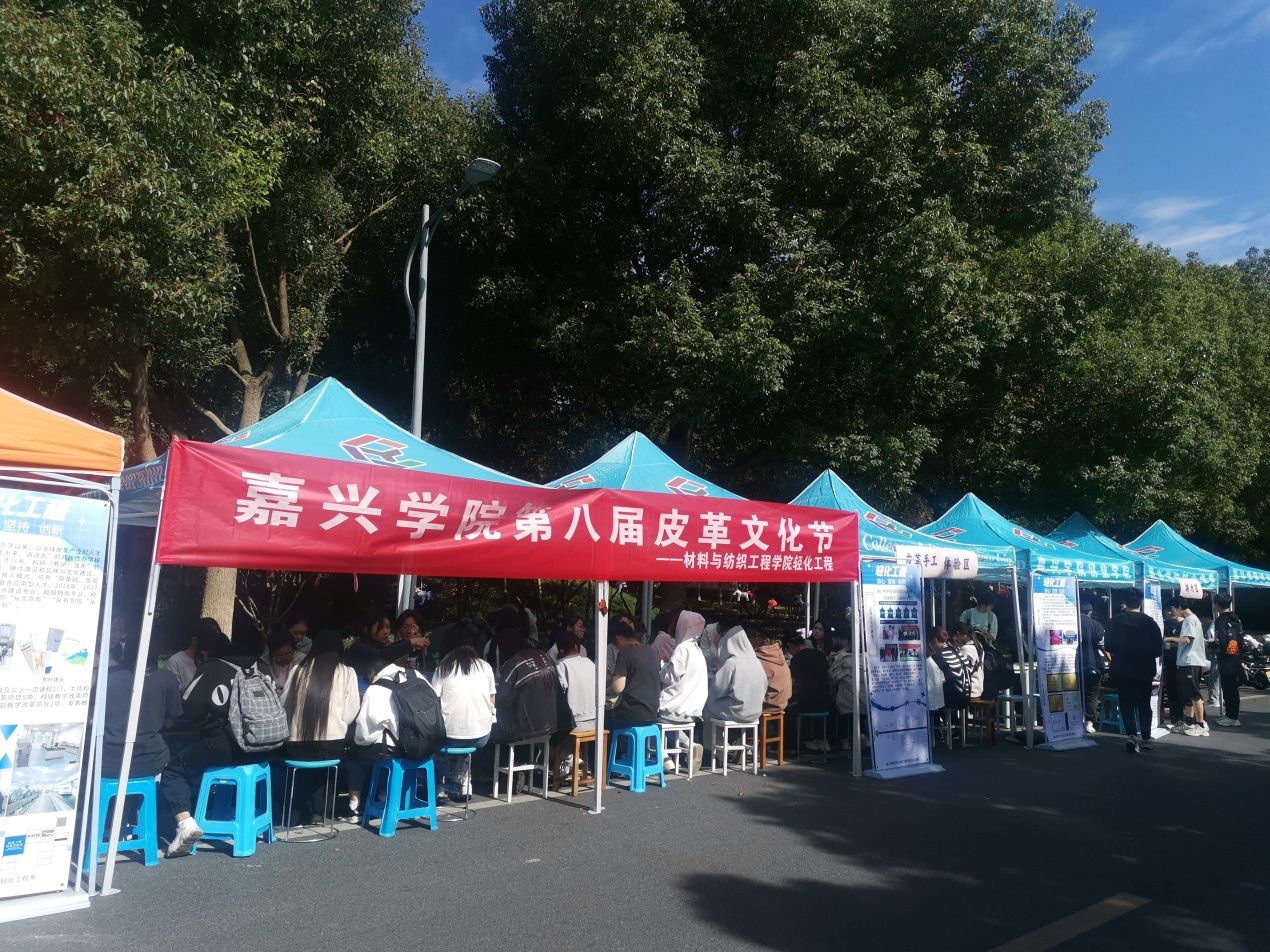轻化工程系、轻化-行政教工联合党支部主办,UP皮匠社承办的“嘉兴学院第八届皮革文化节”于10月28日在第一食堂对面举行。本届皮革文化节由轻化工程系李书卿老师和轻化(实验)211班倪梓文同学联袂策划,轻化工程系全体师生参与了该项活动。