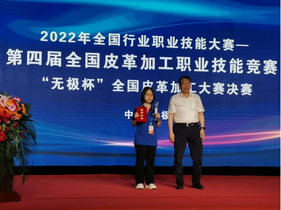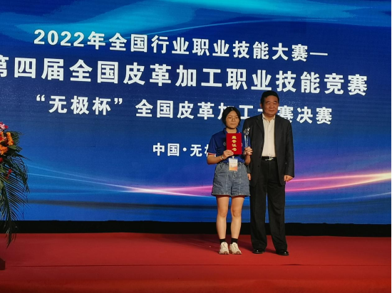 轻化工程系于丽丹同学、陈欣怡同学、顾林锋同学分别夺得了本次大赛总决赛学生组的第一名、第二名和第三名,何叶青同学、余泽新同学分别获得了第五名和第八名,我校被授予优秀组织奖。中国轻工业联合会副会长、中国皮革协会理事长李玉中、无极县县委书记封立新、中国财贸轻纺烟草工会轻工烟草工作部部长杨栋国、中国皮革协会副理事长陈占光等领导为获奖选手颁奖。