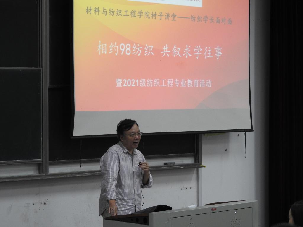 在13号楼报告厅举行纺织学长面对面暨2021级纺织工程专业教育活动。学院部分教师、纺织专业 98届校友代表及纺织专业21级新生参加了此次活动。活动由纺织系主任曹建达主持。