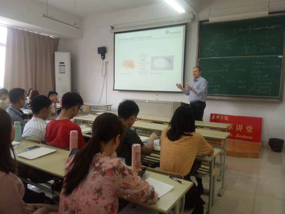 并做客“皮革讲堂”,为TRUMPLER皮革实验班学生讲授《Cleaner production of leather manufacture》课程,内容包括“Leather Overview”、“Leather Manufacture & Pollution Overview”、“Pollutants in Leather Manufacture”、“Cleaner Technologies”等。
