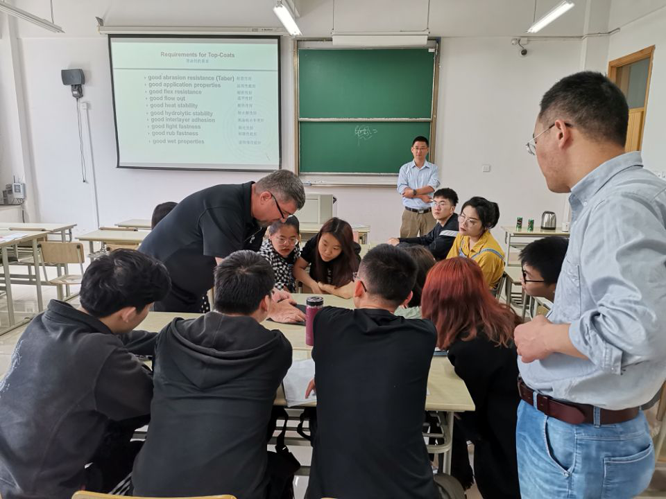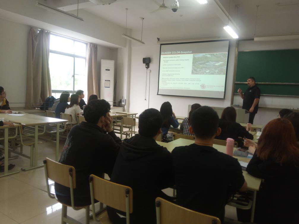 应麻豆 轻化工程系的邀请,美国QUAKER COLOR公司的技术工程师James Withelder先生和杨欣先生于5月14日做客“嘉兴学院皮革讲堂”,为轻化工程专业学生做了“Basic Finishing Knowledge”及“皮革制造4.0”的学术报告,并进行了深入地交流。该报告围绕当前皮革的发展趋势、皮革涂饰的关键技术及皮革智能制造实现的条件等内容进行了精彩的讲解,开阔了本专业师生的视野,加深了对专业知识的理解。
