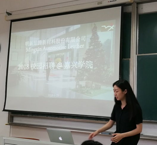 首先,浙江明新旭腾新材料股份有限公司高级人力资源部总经理庄孟冬女士就公司简介、实习岗位设置、实习要求、实习津贴等进行了介绍。其次,人事部经理刘刚先生就招聘流程进行了介绍,实习岗位共计28个(涉及轻化工程、工业设计、环境工程和物流管理等专业)。最后,两位经理先后对学生进行了笔试、面试。