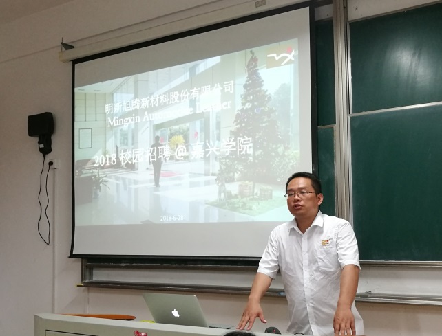 轻化工程系特邀浙江明新旭腾新材料股份有限公司庄经理一行于6月28日上午在10号楼402召开暑期实习和就业招聘会。轻化(实验)151、轻化(实验)161、工业设计15级和环境工程15级学生参与了此次招聘会。