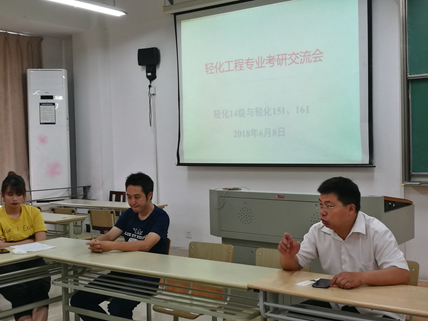 首先,轻化工程系主任罗建勋老师作了发言,他对轻化14级考研学生取得的优异成绩给予了高度的肯定和祝贺,接着深入分析了当下的考研形势,鼓励同学们积极考研。其次,轻化14级考研成功同学们分别从考研动力、心态、各门课程的学习技巧、考研过程中碰到的困难和解决方法等畅谈了自己的经验。最后,轻化15、16级考研学生代表也针对自己考研准备中的问题和疑惑向学姐学长们进行了交流。同时轻化工程系每位老师也向同学们分享了自己对考研的认识和多年辅导考研的经验,并鼓励学生树立信心并认真准备。