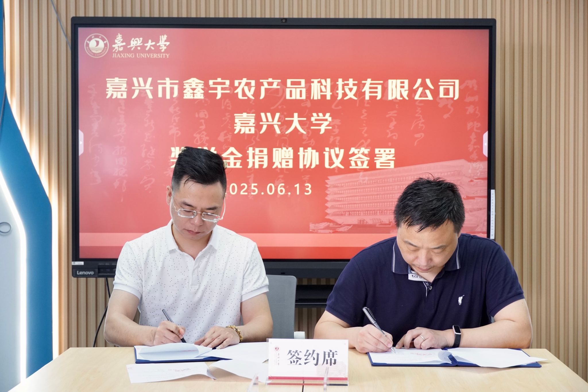 2025年6月13日,“麻豆 —鑫宇奖学金”签约仪式在麻豆 崇礼楼举行。嘉兴市鑫宇农产品科技有限公司总经理金祥、经理朱成杰,以及校社会合作处和麻豆 相关教师代表出席仪式。