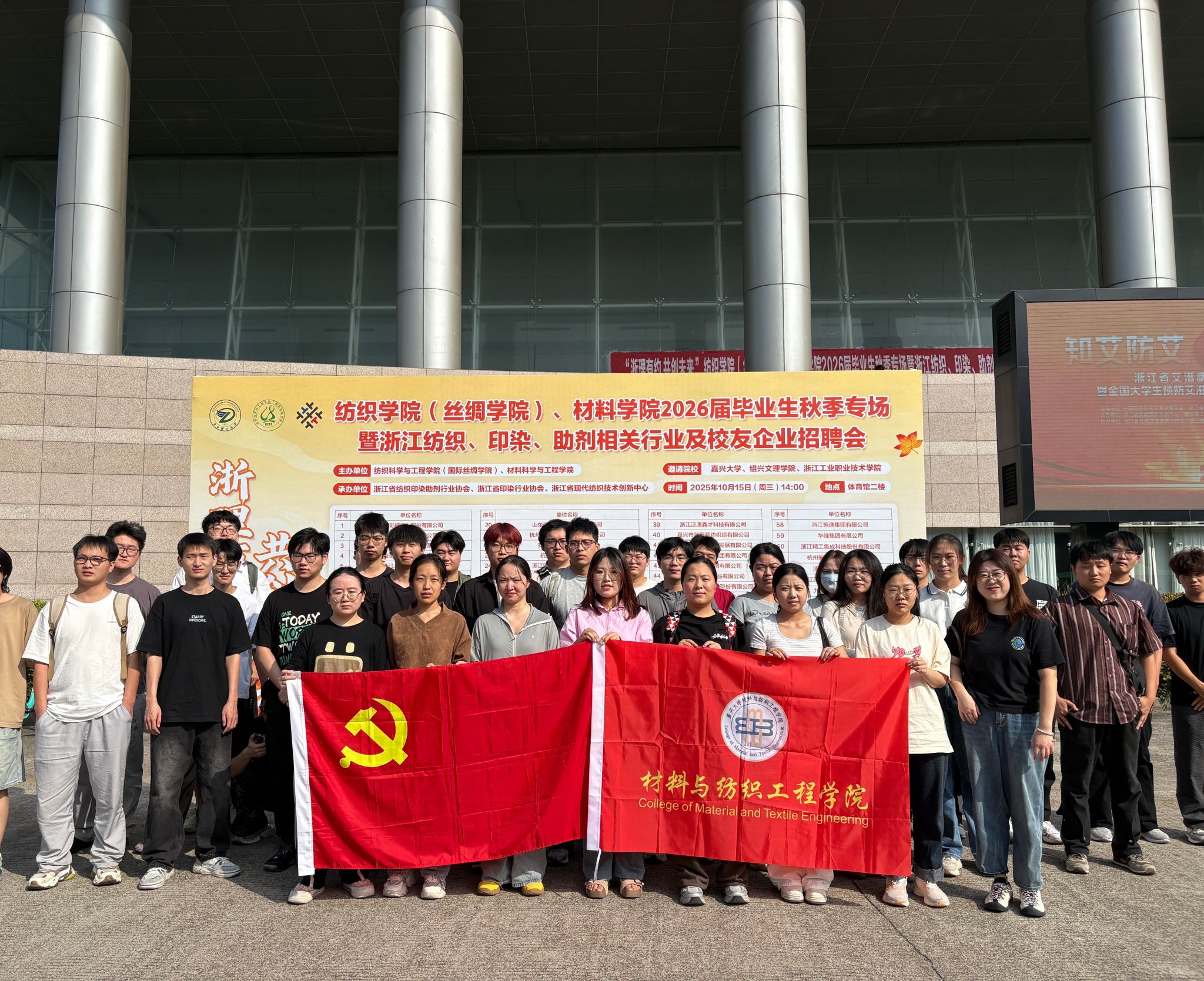 精心组织40余名本科生和研究生前往浙江理工大学参加浙江省印染行业协会、浙江省纺织印染助剂行业协会浙江高校2026届毕业生校园招聘会,与企业面对面交流,探寻职业发展新机遇。