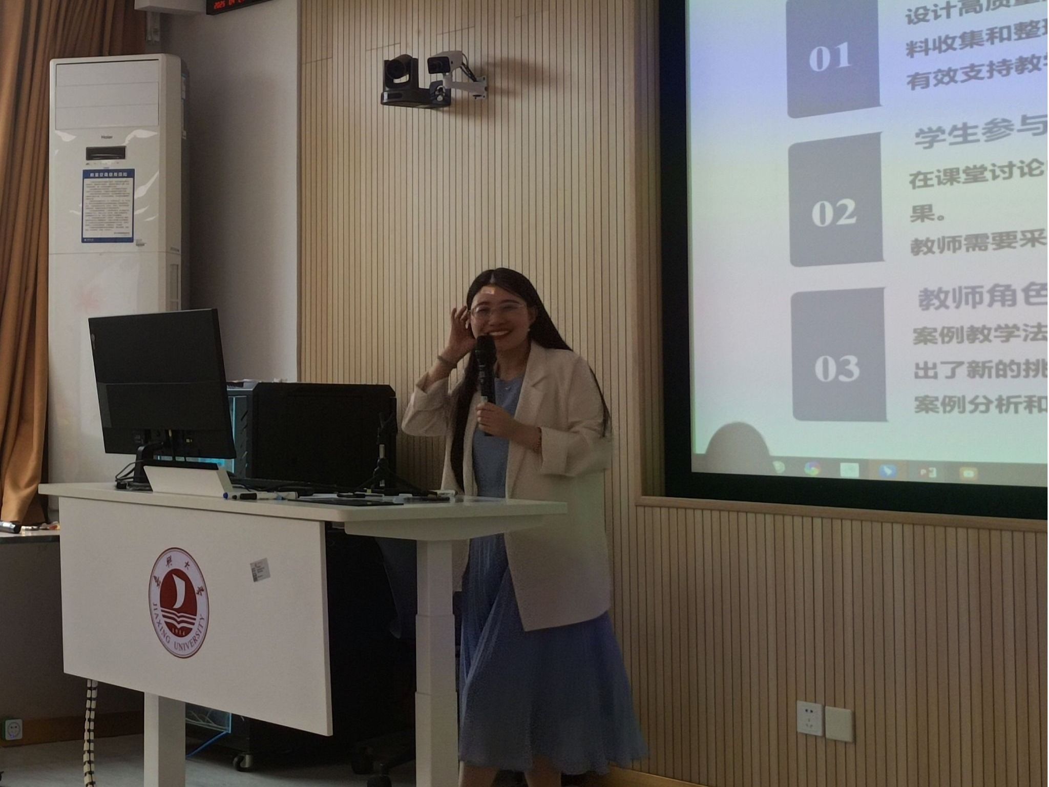 陈洪旭副教授以“案例教学法:理论与实践结合的教学模式”为题,从案例教学法理论历史演变、特点、教学备课和学生学习注意事项、应用案例等方面做了详细分享。