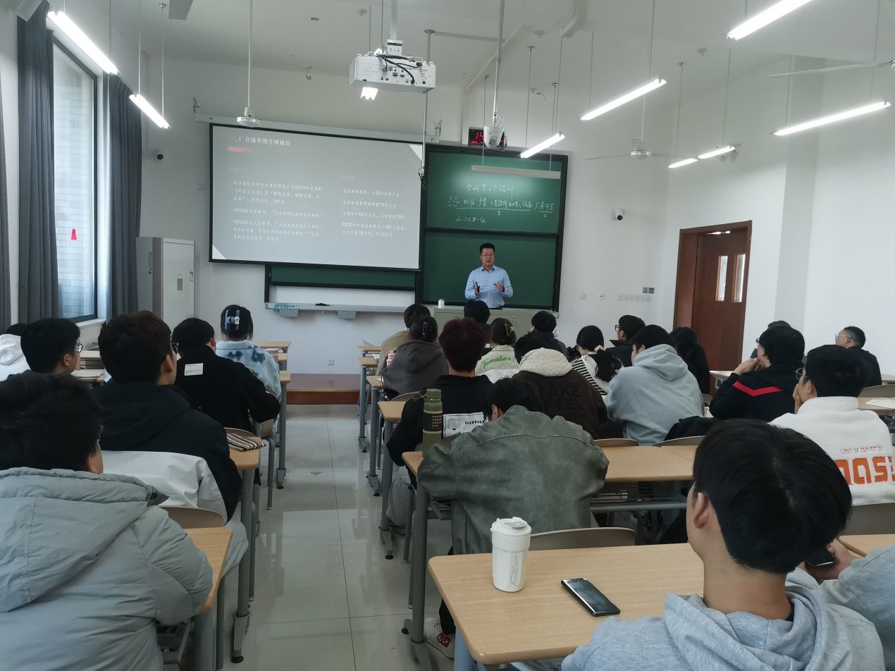 轻化工程系并给生态合成革班学生讲授“时尚皮革与合成革现代产业学院”的产业课程之《合成革工厂设计》。轻化工程系教师和首届生态合成革班全体学生参加了本次活动。活动由系主任罗建勋教授主持。