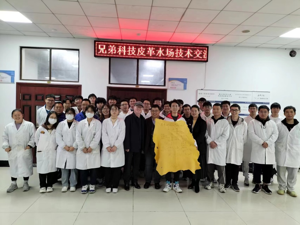 本次交流围绕轻化(专升本)211班的“综合实验”教学活动进行。基于近年来国内外市场对时尚皮革服装革的需求,本次将“时尚纳帕型绵羊服装革的鞣制与染整”作为重点内容。钟莉经理首先介绍了公司的发展情况及对人才的要求。张一昕经理就兄弟科技相关材料及其在“时尚纳帕型绵羊服装革的鞣制与染整”的应用进行了介绍。随后,技术人员团队指导学生开展“时尚纳帕型绵羊服装革的鞣制与染整”工艺的设计与实践。期间,王工、淮工、张经理等深入并有机融入学生之中,就技术问题、行业发展和人才发展等给学生们答疑解惑。最后,校内外指导教师团队对不同组的实践作品进行了评审、专业理论知识比赛(回答比赛、抢答等)和点评,评选出一、二、三等奖和优胜奖并颁发了相应的奖品。另外,交流活动期间,易洪雷院长和寸哲书记看望了客人们并进行了座谈。罗建勋代表轻化工程系带领五位客人参观了轻化工程智慧实验室并介绍了轻化工程专业的发展和现状,并就与兄弟科技在“时尚皮革与合成革现代产业学院”的进一步合作进行了深入的交流。