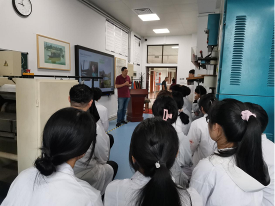 轻化工程专业建设的基本情况和发展现状,就生态合成模块的人才培养方案及《时尚合成革的设计与制作》课程在人才培养方案中的地位和作用。随后,郭祥经理一行分别介绍了斯塔尔公司的业务范围、生物基、低碳、环保型材料性能及应用领域,就水性干法合成革的技术、PVC的表面处理技术等进行了讲解和指导设计与制作。同学们在斯塔尔公司老师的指导下,认真听讲、设计方案、仔细实施与交流讨论,在理论知识方面得到加强,在实践和创新能力方面得到提升,具有满满的获得感。最后,五位老师分别就指导内容给同学们进行了总结,并提出了期望。班级学习委员王成代表班级同学感谢郭经理一行的悉心指导和倾心、倾情、倾力的付出。