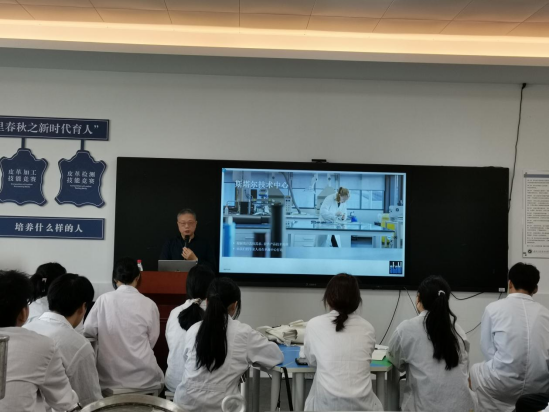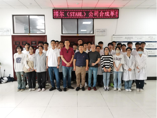 轻化工程系特邀请作为“时尚皮革与合成革现代产业学院”共建单位之一的斯塔尔精细涂料(苏州)有限公司郭祥经理、夏敏经理、李建辉工程师、袁欣高工、骆如慧工程师一行5人来校共同指导轻化(专升本)221班学生的《时尚合成革的设计与制作》课程的讲授与建设,轻化工程系主任、课程负责人罗建勋教授全程陪同讲授。