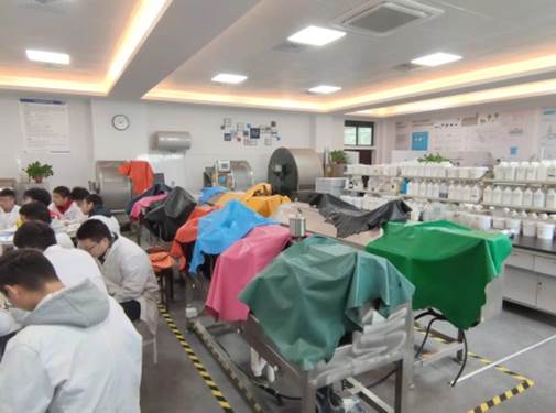 本次交流围绕轻化(专升本)211班的“综合实验”教学活动进行。基于近年来国内外市场对时尚皮革服装革的需求,本次将“时尚纳帕型绵羊服装革的涂饰”作为重点内容。李艳经理介绍了STAHL公司的情况及在“双碳”和可持续发展方面的贡献,其次蔡经理做了主题为“皮革与时尚”的精彩报告,阐述了时尚市场的行业潮流及相关概念、以及皮革在时尚产品中的广泛应用场景。然后由唐工用多种讲授方式详细讲解了涂饰技术,并与校内教师一同指导学生开展“时尚纳帕型绵羊服装革涂饰”的工艺设计与实践,同时在线上与同学们实时互动,实时解答同学们在涂饰实践过程中的疑难问题。