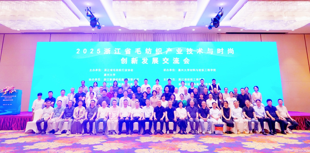 承办的2025浙江省毛纺织产业技术与时尚创新发展交流会于2025年6月10日下午在嘉兴华美达酒店隆重召开。本届会议以“智创未来,时尚生态”为主题,得到浙江新澳纺织股份有限公司、浙江中鼎纺织股份有限公司、浙江沃棆特实业集团有限公司、 上海纺织集团检测标准有限公司嘉兴市时尚产业协会、浙江省纺织工程学会、 浙江米拉里奥服饰股份有限公司、浙江永金生物科技有限公司、苏州友联纺工装备科技股份有限公司 、宁波得昌纺织科技有限公司等单位的大力支持,会场齐聚了省内外近200位行业领袖、专家学者及企业代表,共同聚焦毛纺织产业的可持续发展、智能制造与时尚创新等前沿议题,探讨行业高质量发展新蓝图。