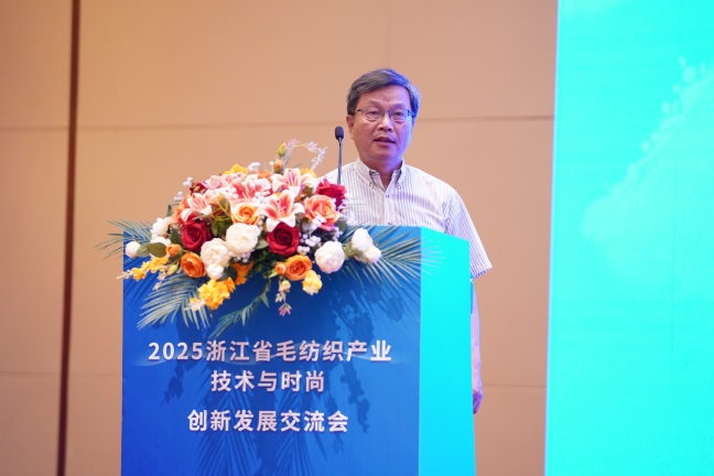 副校长周宏伟则阐述了高校在产学研深度融合中的关键作用;浙江省毛纺织行业协会会长、浙江羊绒世家服饰股份有限公司董事长蒋庆云深入分析了当前产业面临的机遇与挑战,呼吁全行业以创新为引领,携手推动高质量发展。