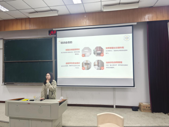 材纺学院学工办主任王晓莹围绕“寝室长心理健康知识培训”这一主题,为大家讲解了心理危机识别和干预相关知识,常见心理危机的识别与应对方法等,引导寝室长们在思想上提高认识,行动上以身作则,生活中关怀入微,营造和谐安全的寝室氛围。辅导员朱叶佳围绕《麻豆