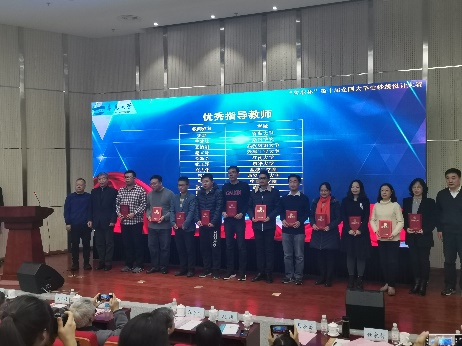 由曹建达老师带领孙毅杰、代琼香、姜家乐三名同学代表学院领奖,获得特等奖1项、一等奖1项、二等奖1项、三等奖x项,我校获优秀组织奖,曹建达老师获优秀指导教师奖。