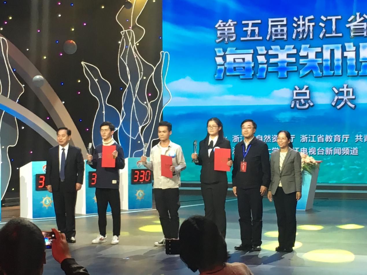 本届竞赛由浙江省自然资源厅、浙江省教育厅、共青团浙江省委和浙江省学生联合会联合主办,浙江海洋大学、浙江电视台公共•新闻频道共同承办,我校选手徐晓飞在半决赛脱颖而出,进入了电视总决赛。经过“极速60秒”、“出奇制胜”等多个环节的比拼,徐晓飞同学以活跃的表现获得了全省一等奖的荣誉称号,李寒星老师获得了优秀指导教师奖,我校也获 “活动组织奖”。