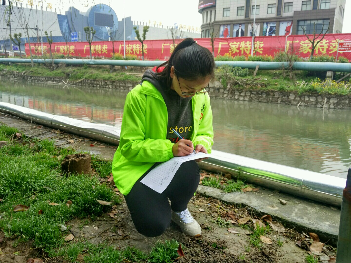 迎着微风,伴着朝阳,志愿者们分头前往桐乡市区、濮院镇、屠甸镇、崇福镇,针对青阳河、重阳市河、京杭大运河、万年桥港等16条河流,围绕河流名称、河流量、河水水质、改善情况等几个方面进行重点勘察。通过实地访问当地居民,志愿者们了解到“五水共治”工作开展以来获得的良好成效和持续开展的必要性,并通过电话采访河长了解河流具体情况和今后的工作方向。