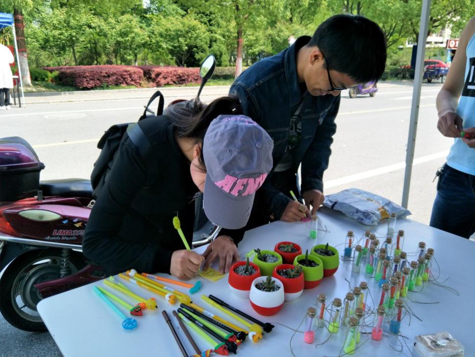 4月22日一早,伴随着和风与朝阳,材纺学院心理中心工作人员在梁林校区老食堂门口搭起了“大本营”。精美的宣传展板、炫彩的漂流瓶、精致的明信片很快便吸引了往来同学。在工作人员的引导下,他们将自己的心情、心事、心愿写在纸上,封入漂流瓶中,期待遇到自己的有缘人。直中午12点半,66个漂流瓶全部封存,“心语漂流”环节告一段落。