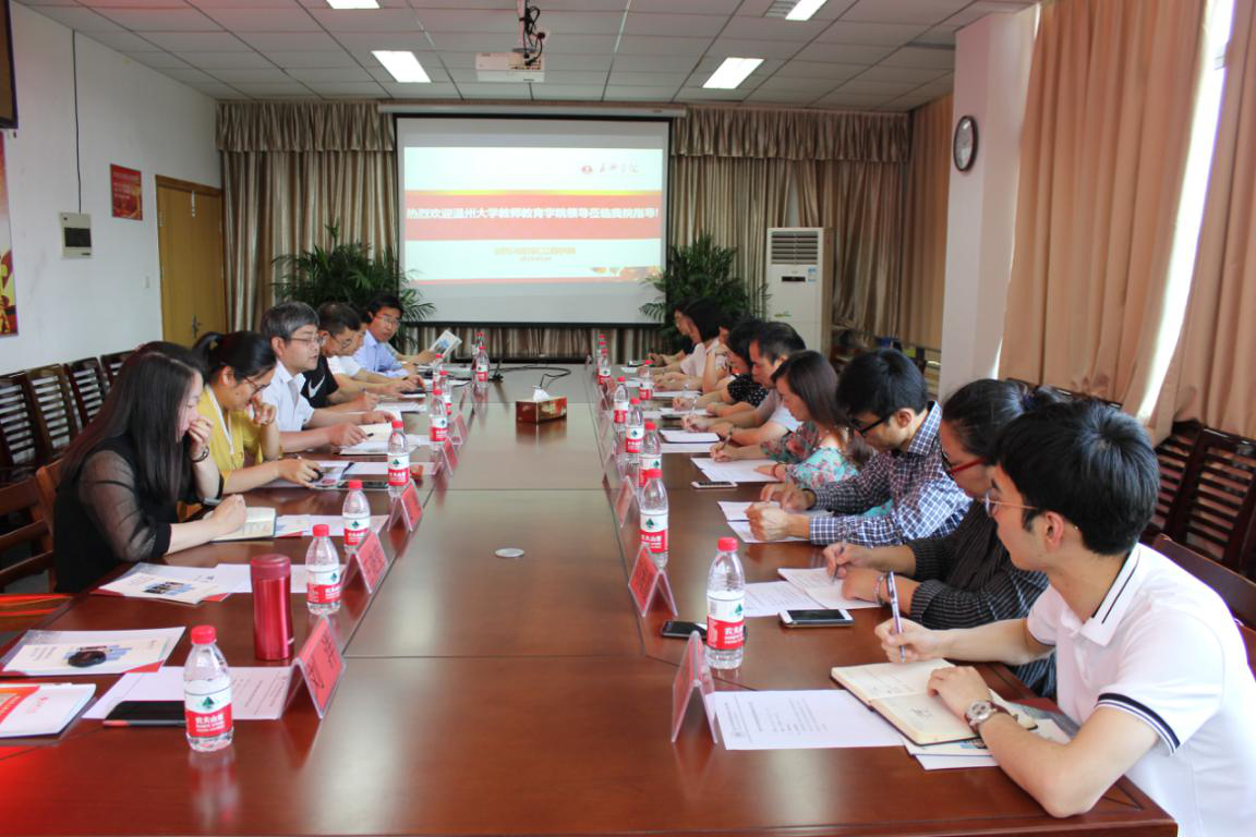 5月24日下午,温州大学教师教育学院党委书记杨立淮一行9人到材纺学院考察交流。材纺学院党委书记易洪雷、副书记黄芳芳、各党支部书记参加座谈。