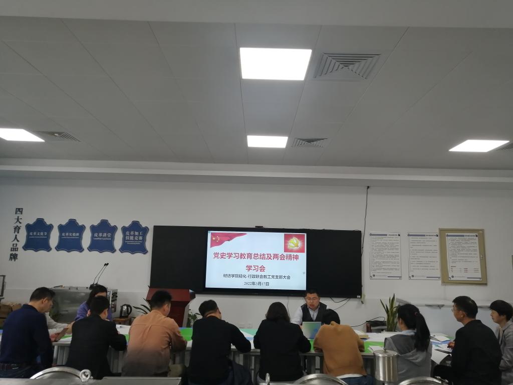 轻化-行政联合党支部在轻化工程智慧实验室召开党史学习教育总结及两会精神学习会。支部全体党员参加了会议,部分非党员教工也列席了会议。会议由党支部书记罗建勋主持。