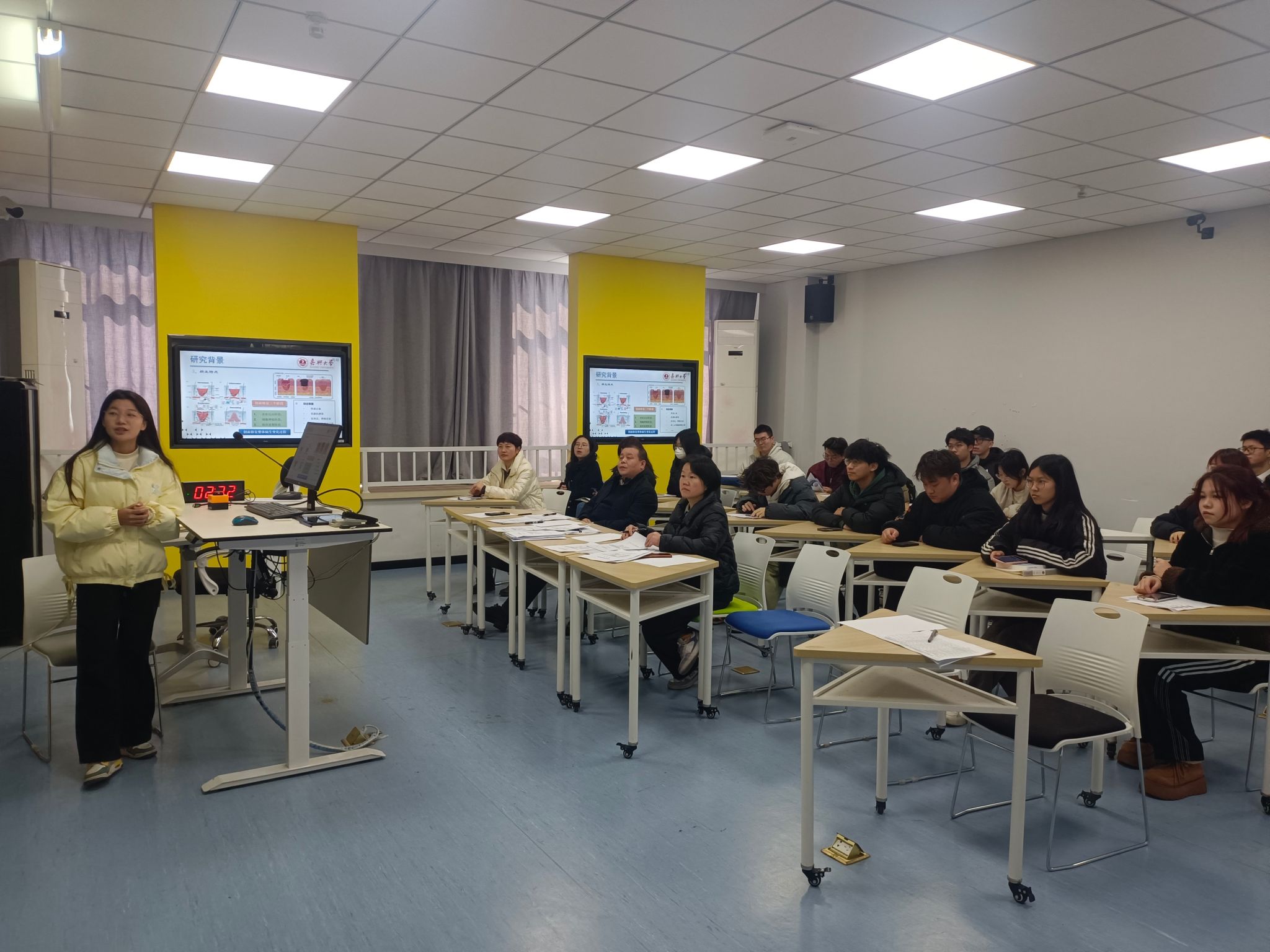 本次申报共有10个本科生项目、11个研究生项目。各项目负责人同学分别从项目研究背景、研究思路与计划、预期成果等方面进行了汇报。专家组结合项目申报书和学生现场答辩情况,逐一对项目进行提问或指导建议。
